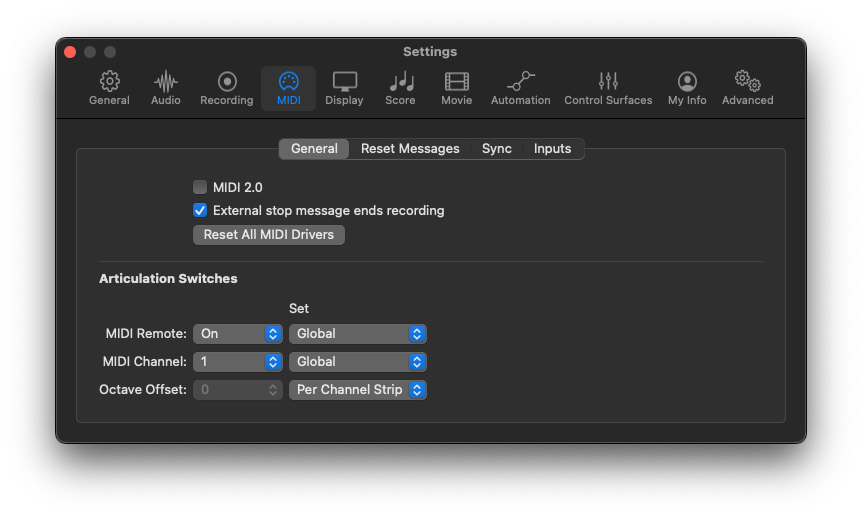 Open Logic Pro and go to Settings > General > MIDI.